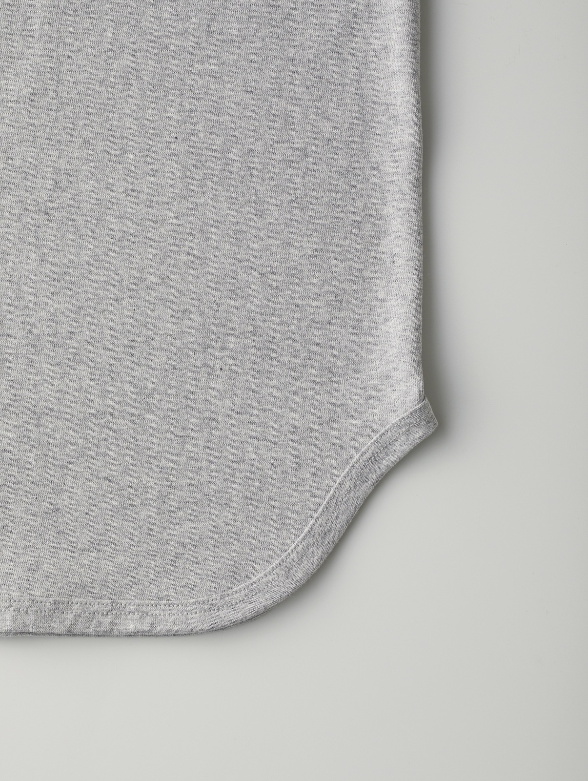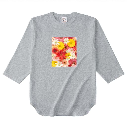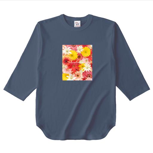 裾はベースボールTシャツらしくラウンド型で、袖は七分丈(=3/4スリーブ)です。